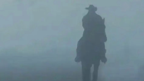 乡间小路偶遇一人一马从容踏雾而行